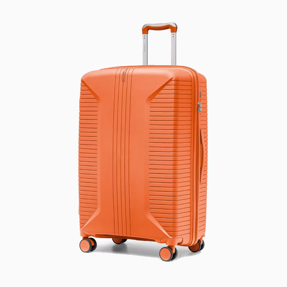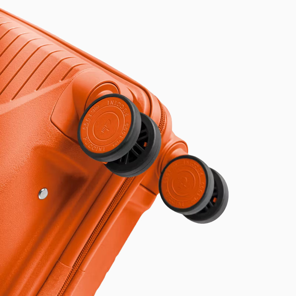 - walizka twarda wykonana z polipropylenu, materiału charakteryzującego się super lekką wagą i niezwykłą wytrzymałością