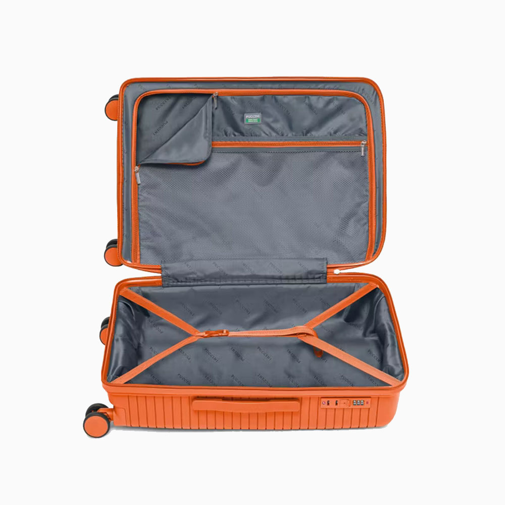 - walizka twarda wykonana z polipropylenu, materiału charakteryzującego się super lekką wagą i niezwykłą wytrzymałością