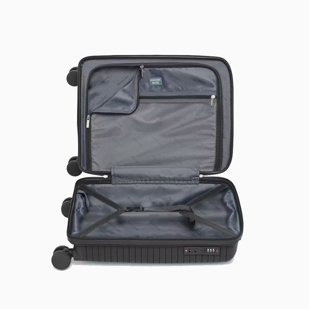 - walizka twarda wykonana z polipropylenu, materiału charakteryzującego się super lekką wagą i niezwykłą wytrzymałością