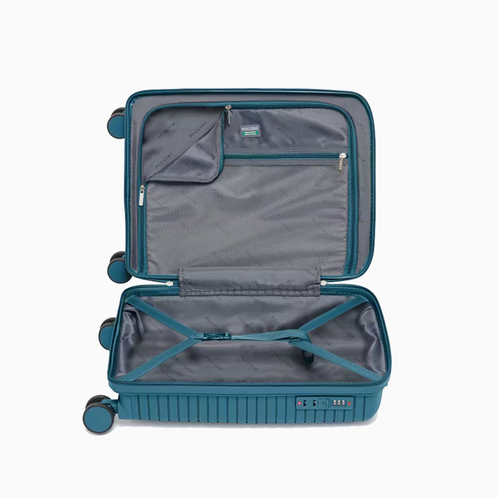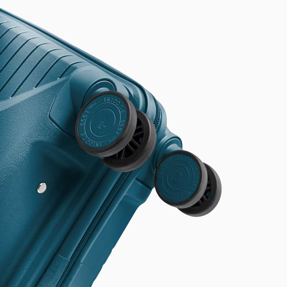 - walizka twarda wykonana z polipropylenu, materiału charakteryzującego się super lekką wagą i niezwykłą wytrzymałością