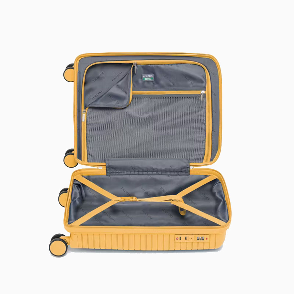 - walizka twarda wykonana z polipropylenu, materiału charakteryzującego się super lekką wagą i niezwykłą wytrzymałością
