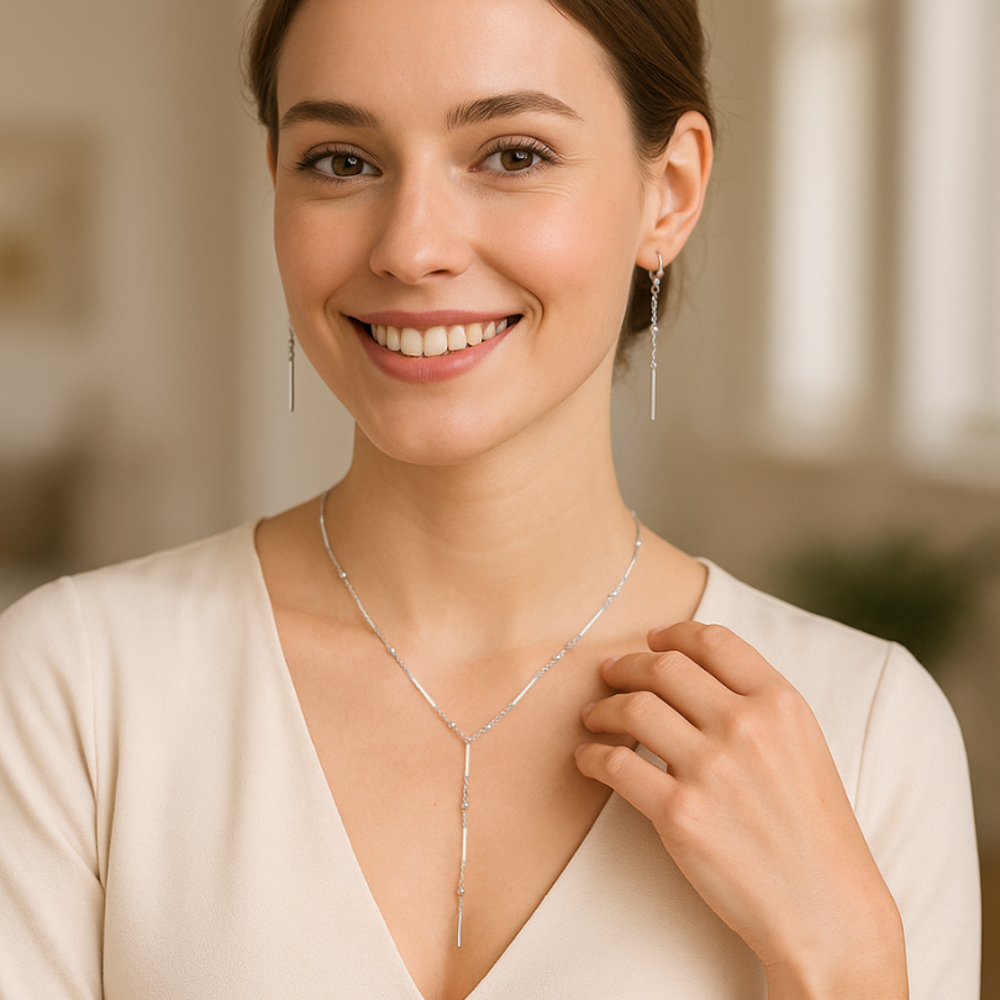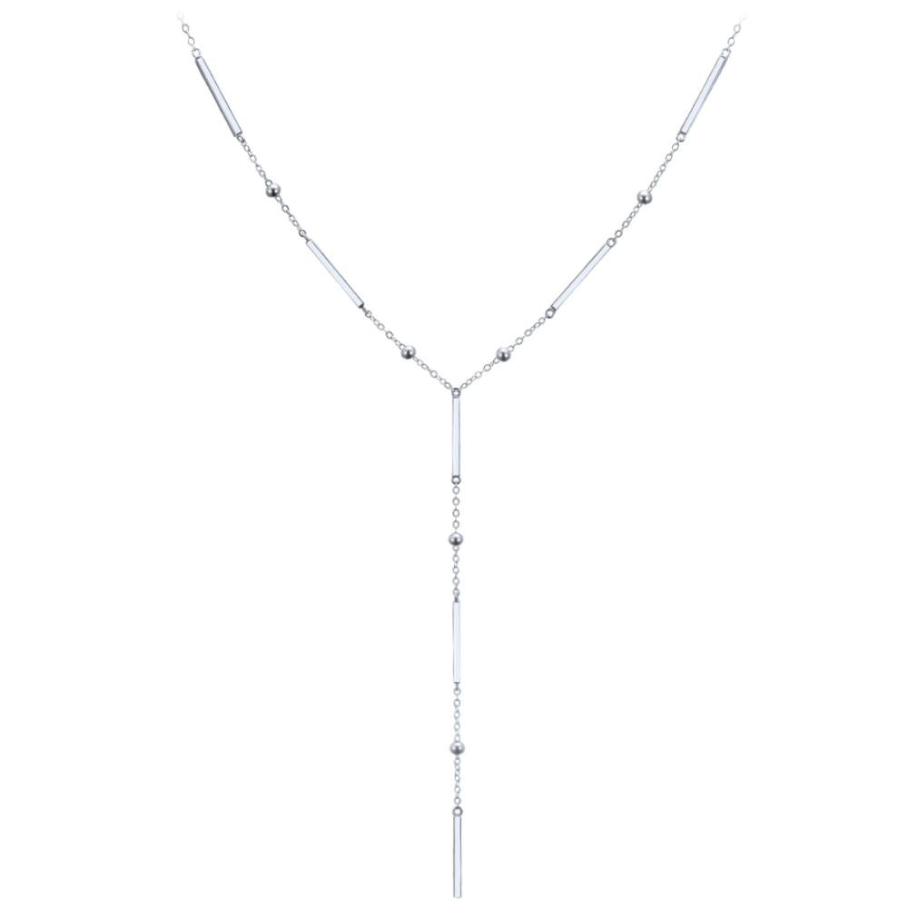 MINET Elegancki srebrny naszyjnik z prętami, kulkami i wiszącym łańcuszkiem