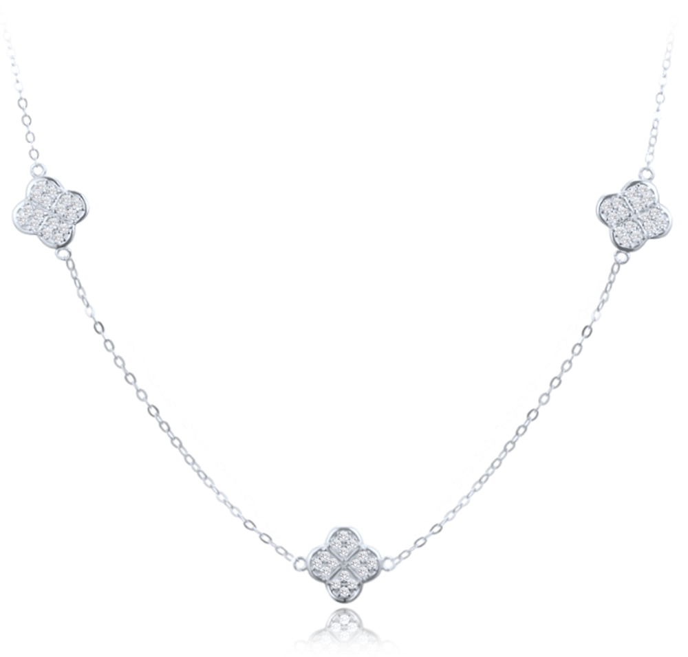 MINET Srebrny naszyjnik z koniczynkami i białymi cyrkoniami