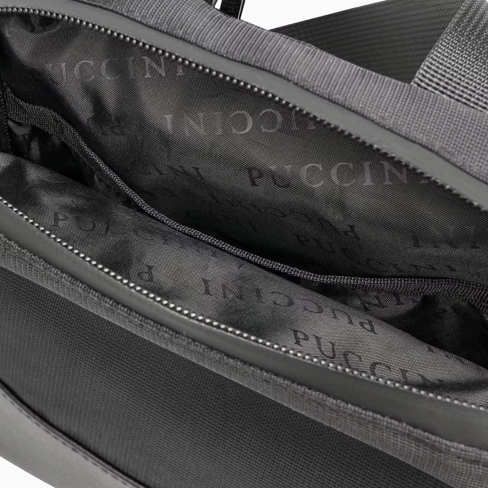 - na przodzie wstawka ze skóry ekologicznej, z wytłoczeniem logo PUCCINI