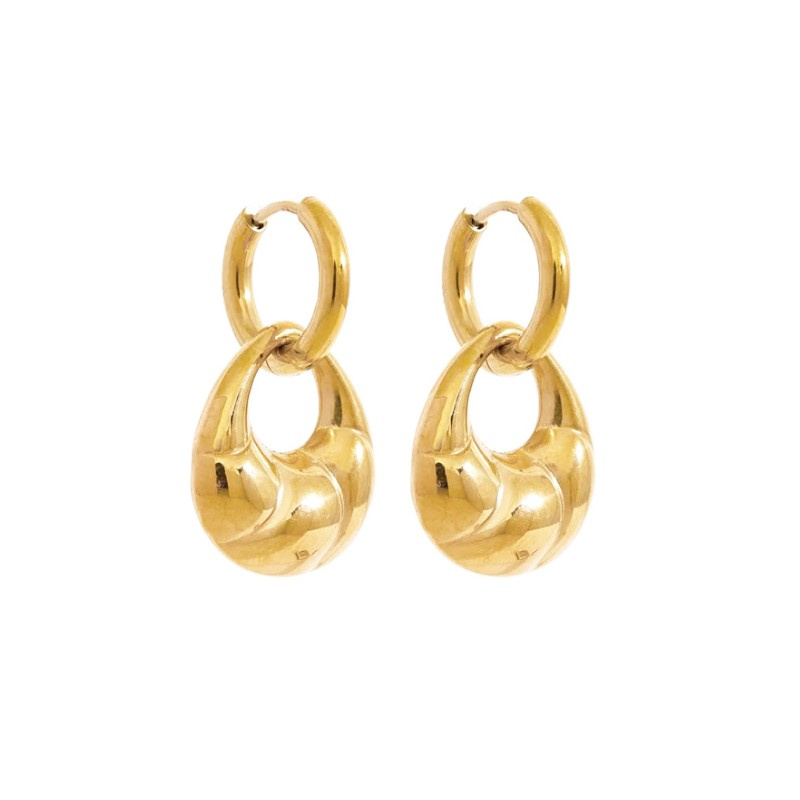 WYMIARY: 1,8 x 3 cm Kolor: jasne złoto Rodzaj zapięcia: angielskie Waga: 7g STAL CHIRURGICZNA jest odporna na warunki atmosferyczne, nie ulega korozji, nie
