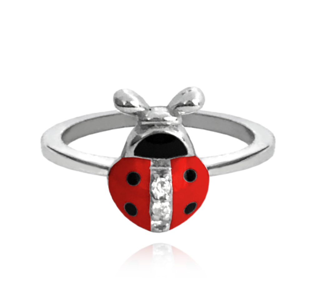 MINET Dziecięcy srebrny pierścień BIEDRONKA z cyrkoniami wielkość 10