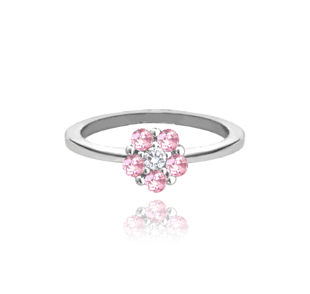 MINET Dziecięcy srebrny pierścień KWIAT z różowymi cyrkoniami wielkość 6