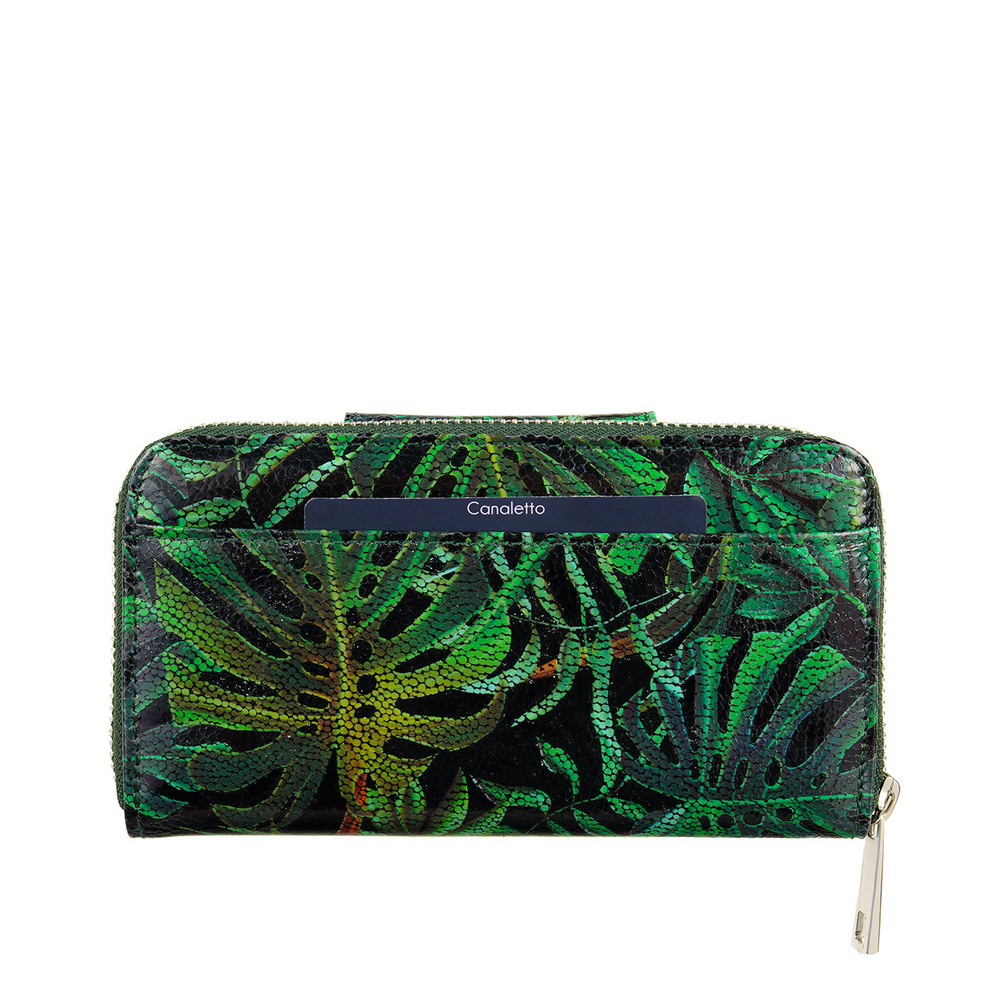 Portfel wykonano z naturalnej skóry licowej, która charakteryzuje się trwałością, odpornością na codzienne użytkowanie oraz pięknym, kolorowym wykończeniem. Wielobarwna kompozycja sprawia, że portfel wyróżnia się na tle innych modeli i wnosi odrobinę radości do codziennych stylizacji.