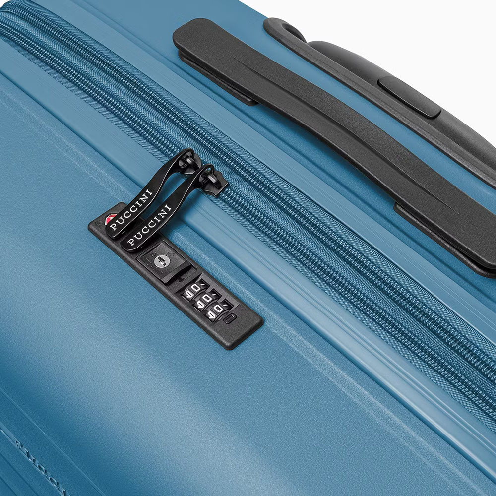 - dodatkowo wyposażona w wbudowany do wnętrza walizki zamek szyfrowy TSA (Travel Security Agency, bardzo przydatny w podróżach do USA)