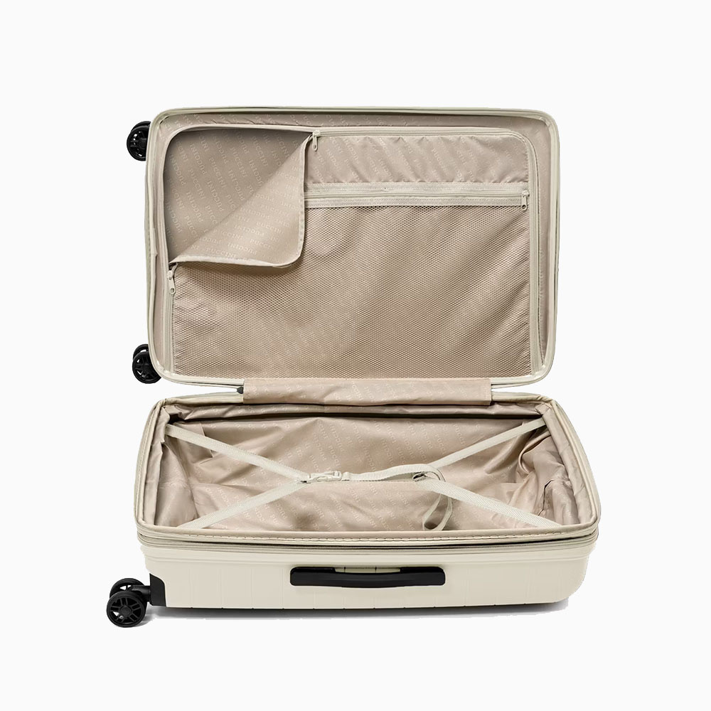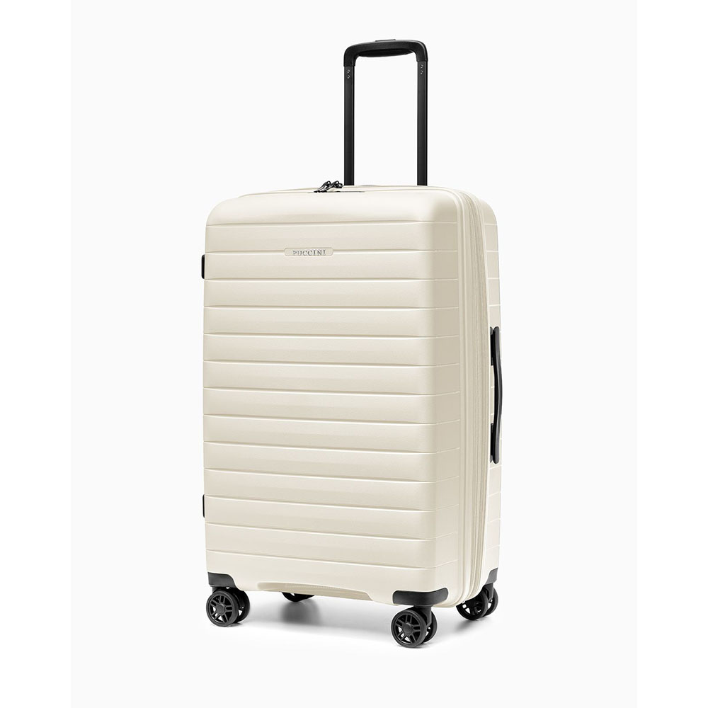 - walizka twarda wykonana z polipropylenu, materiału charakteryzującego się super lekką wagą i niezwykłą wytrzymałością
