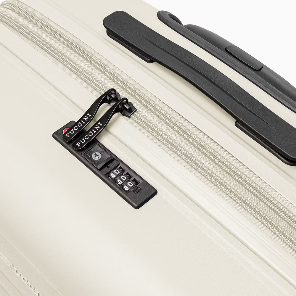 - dodatkowo wyposażona w wbudowany do wnętrza walizki zamek szyfrowy TSA (Travel Security Agency, bardzo przydatny w podróżach do USA)