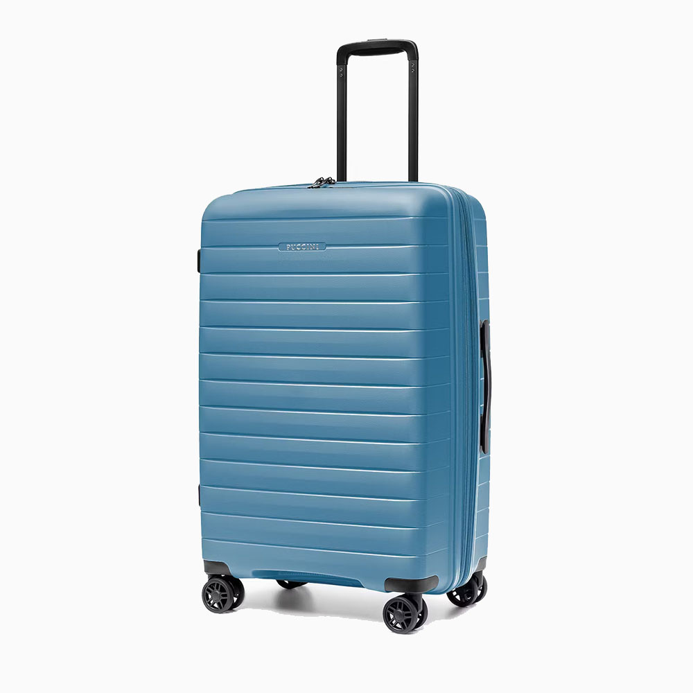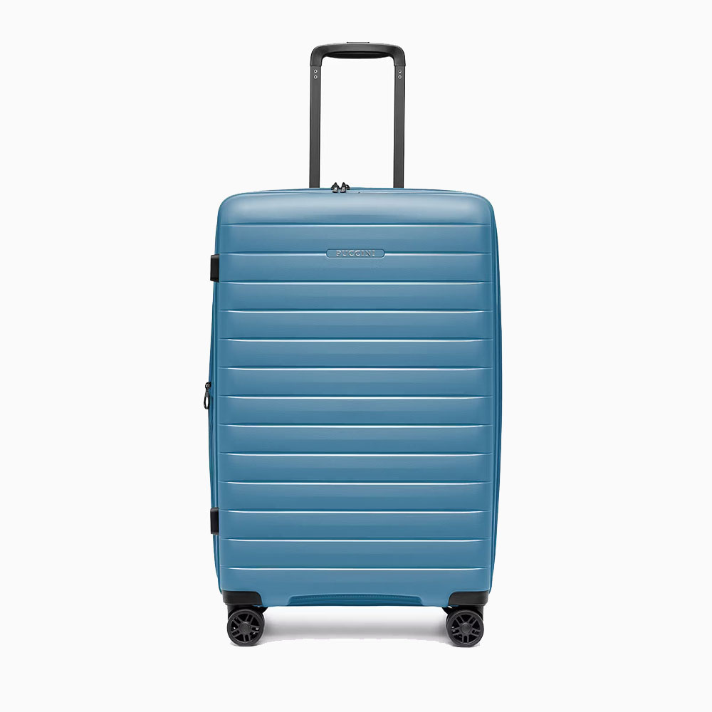 - walizka twarda wykonana z polipropylenu, materiału charakteryzującego się super lekką wagą i niezwykłą wytrzymałością