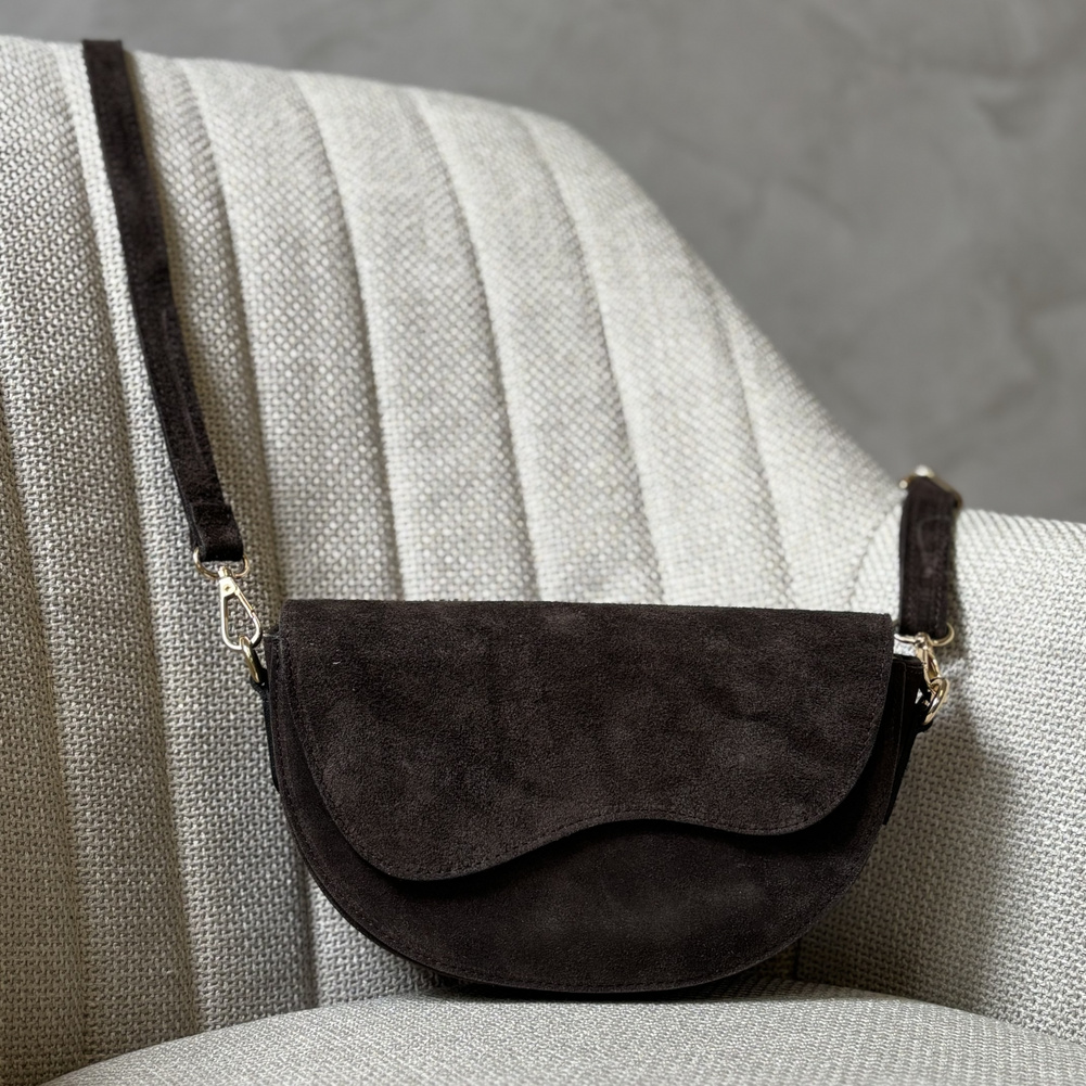 ORYGINALNA MODNA TOREBKA NA RAMIĘ Z NATURALNEGO ZAMSZU