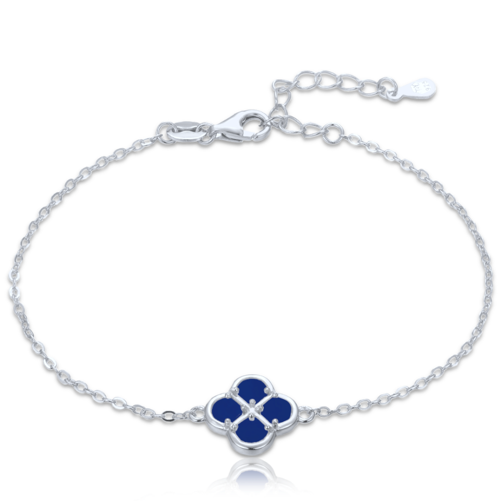MINET Srebrna bransoletka koniczyna z lapisem