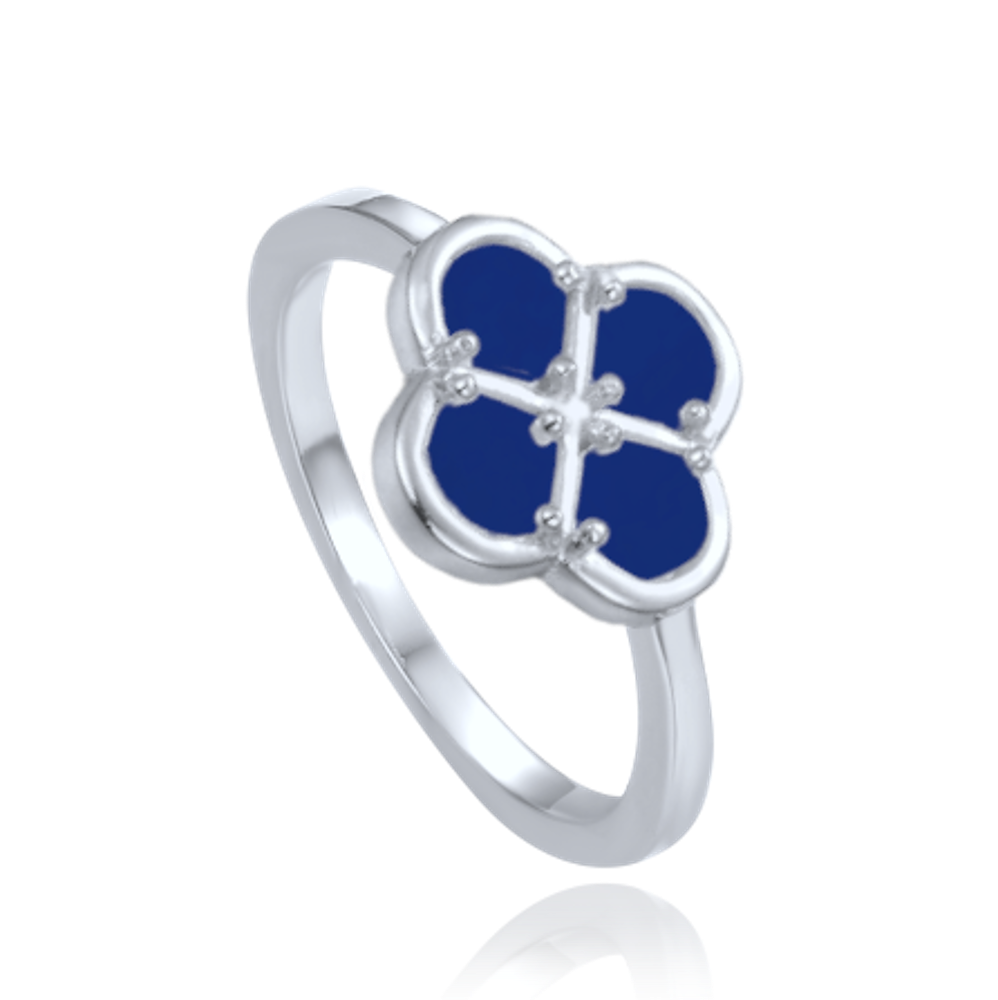MINET Srebrny pierścionek koniczyna z niebieskim lapisem wielkość 16