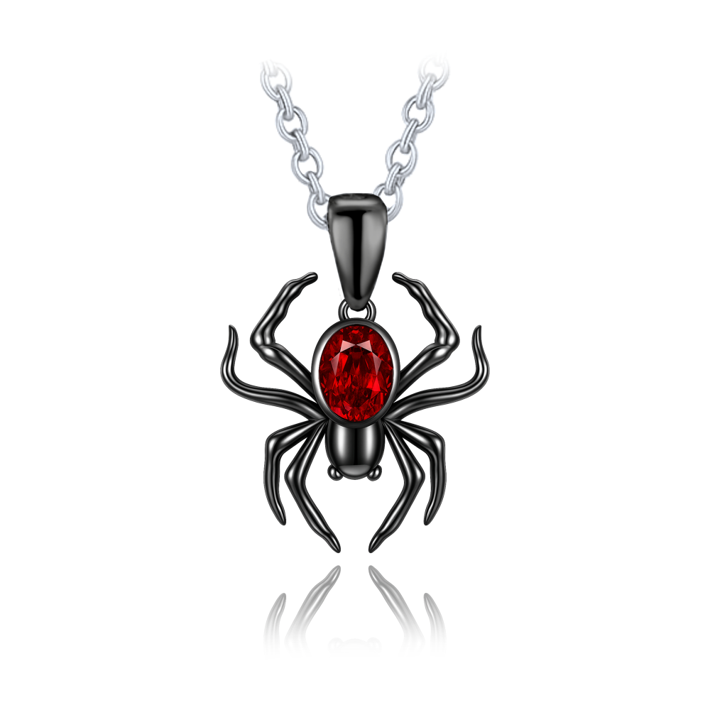 MINET Nowoczesny czarny srebrny naszyjnik pająk z czerwonym cyrkonem