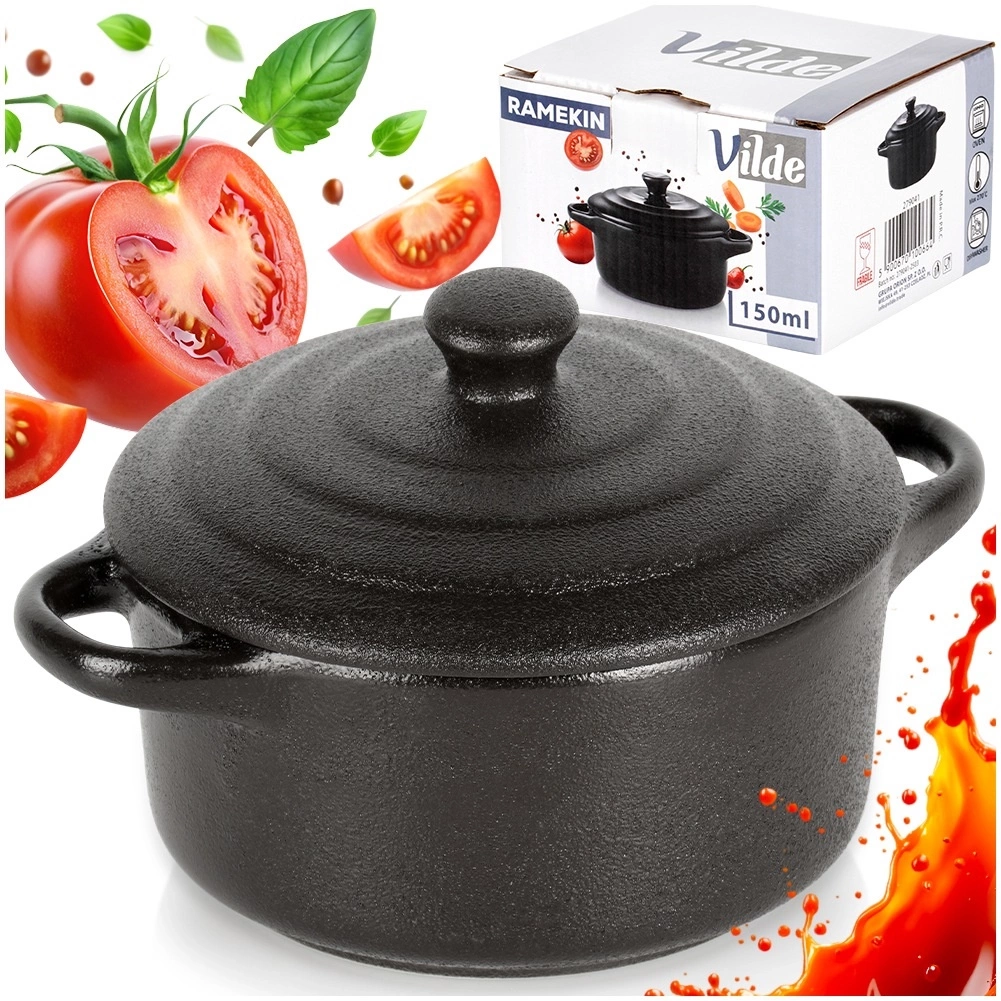 - Miseczka do zapiekania o pojemności 150 ml - Kokilka do zapiekania w formie małego garnuszka z pokrywką. Sprawdzi się do zapiekania słodkich i słonych przysmaków. Miseczka ma pojemność 150 ml i wymiary 13,5 x 10 x 5 cm, a wysokość z pokrywką wynosi 8 cm.