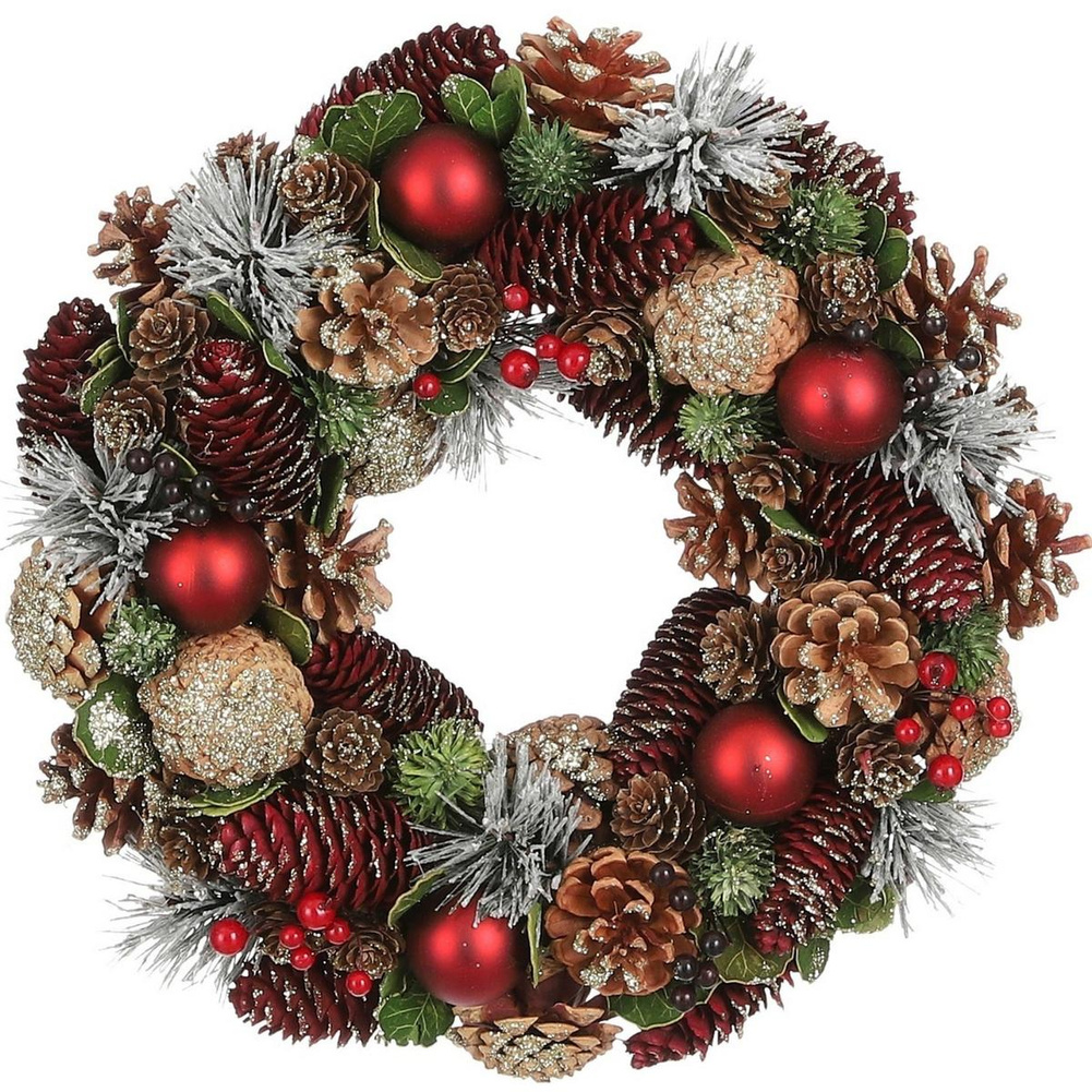 WIANEK DEKORACYJNY 34 CM ZIELONY Z SZYSZKAMI I BOMBKAMI MICA