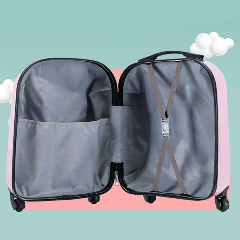 Walizka dodatkowo wyposażona jest w pasy zabezpieczające wewnątrz, zapinana na dwustronny zamek błyskawiczny.