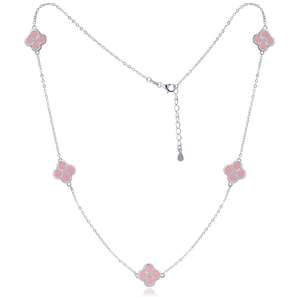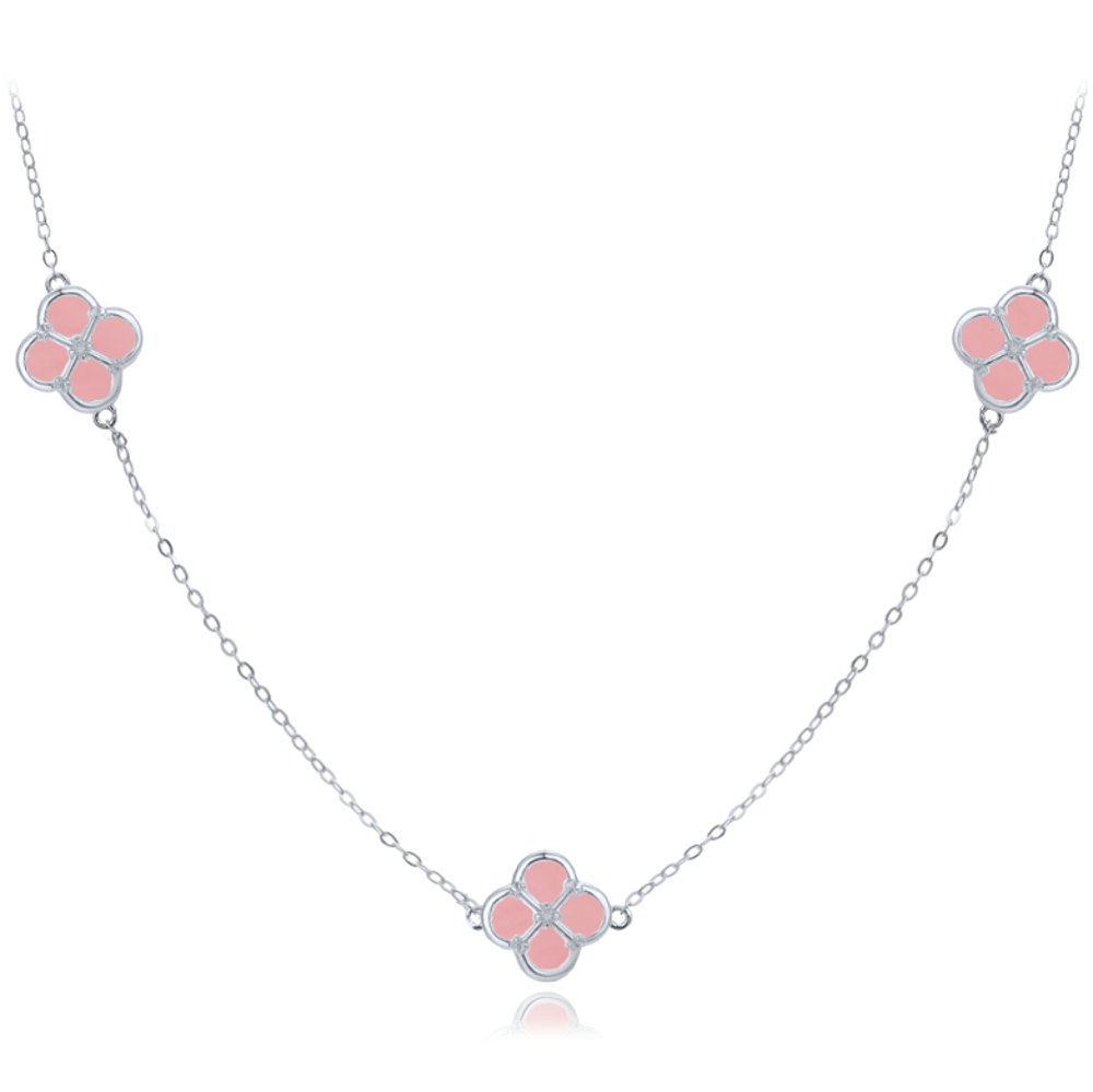 MINET Srebrny naszyjnik koniczyna z jadeitem