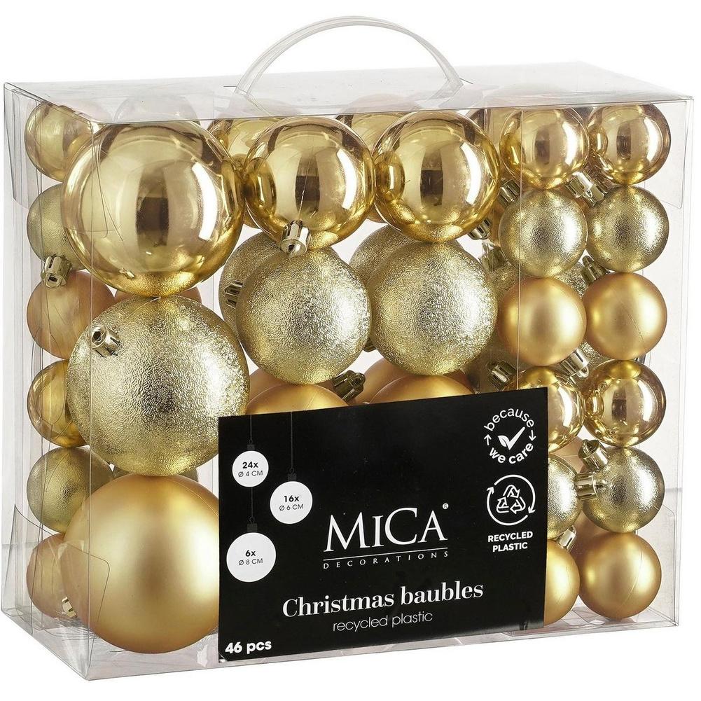Zestaw bombek złotych MICA 46 sztuk – elegancja, bezpieczeństwo i świąteczny blask w jednym! Udekoruj choinkę tak, by przyciągała wzrok i wprowadzała magię świąt do Twojego domu.