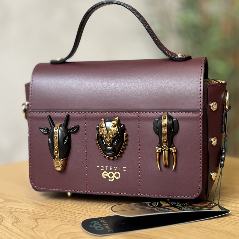 - Klapa ozdobiona czarno-złotymi nitami w kształcie etnicznych masek w stylu azteckim