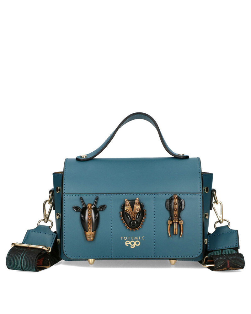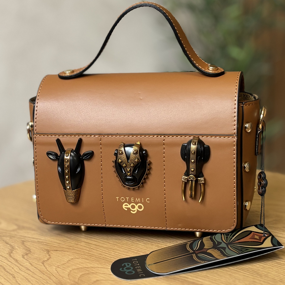 - Klapa ozdobiona czarno-złotymi nitami w kształcie etnicznych masek w stylu azteckim
