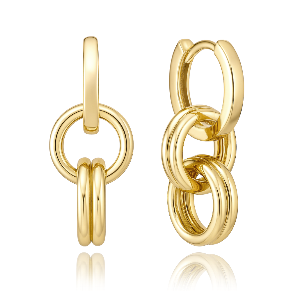MINET Złote kolczyki połączone pierścionki Au 585/1000 1,60g