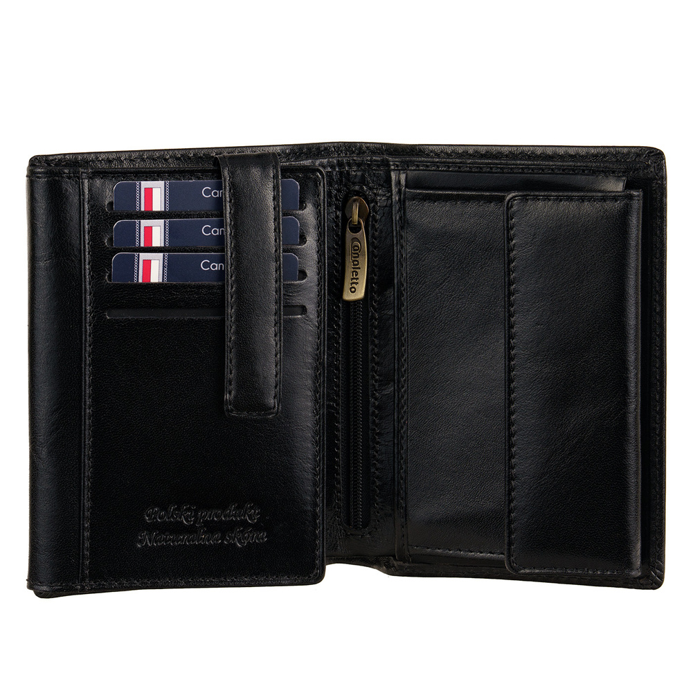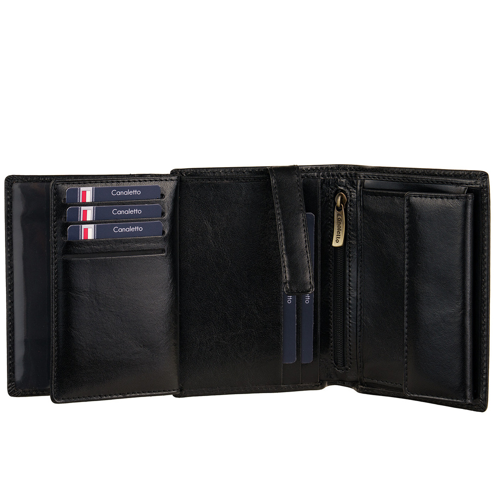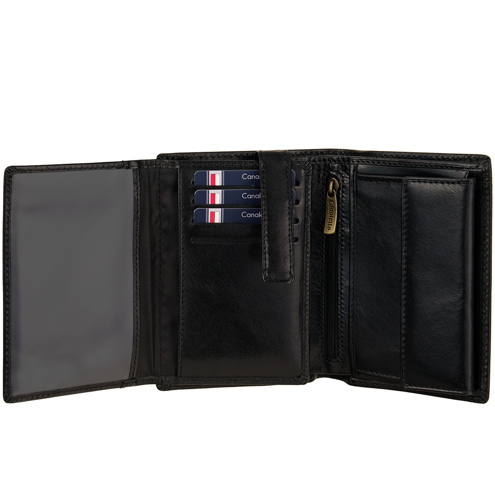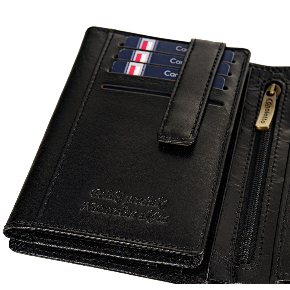 Czarny portfel skórzany Canaletto to doskonały wybór – klasyczne rzemiosło, skóra naturalna licowa i praktyczne wnętrze sprawiają, że stanie się nieodłącznym elementem Twojego codziennego stylu.