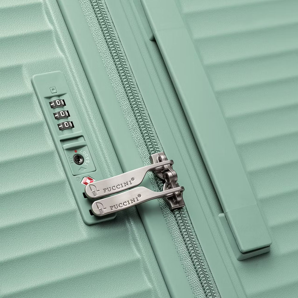 - dodatkowo wyposażona w wbudowany do wnętrza walizki zamek szyfrowy TSA marki YF (Travel Security Agency, bardzo przydatny w podróżach do USA)