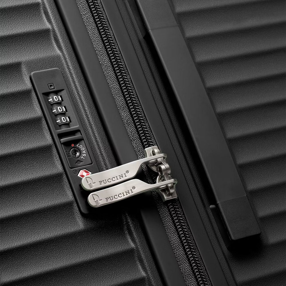 - dodatkowo wyposażona w wbudowany do wnętrza walizki zamek szyfrowy TSA marki YF (Travel Security Agency, bardzo przydatny w podróżach do USA)