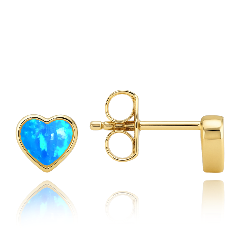 MINET Złote kolczyki małe serduszka z niebieskim opalem Au 585/1000 0,80g