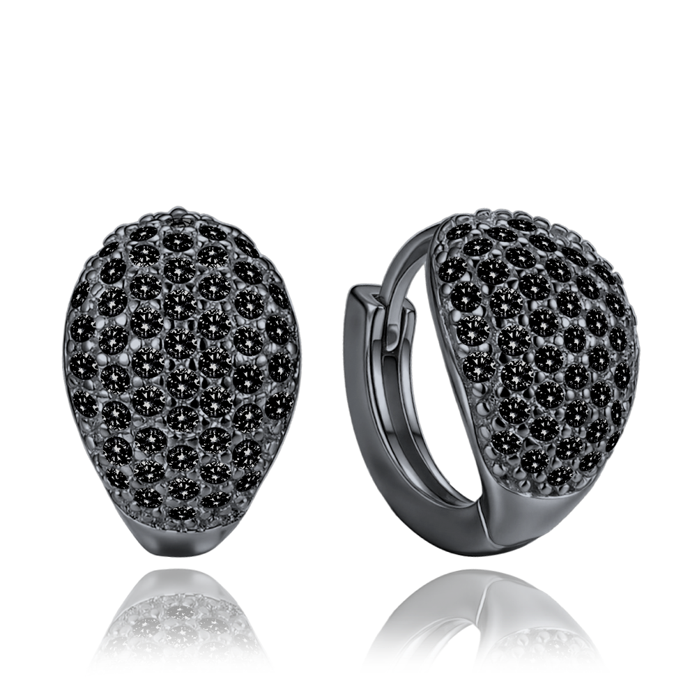 MINET Kolczyki srebrne krople z czarnymi cyrkoniami