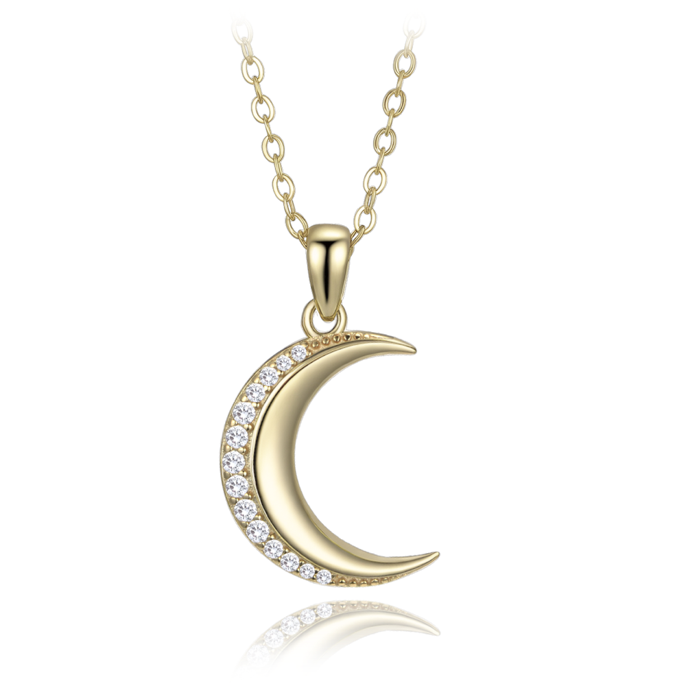 MINET Pozłacany naszyjnik srebrny z księżycem i białymi cyrkoniami