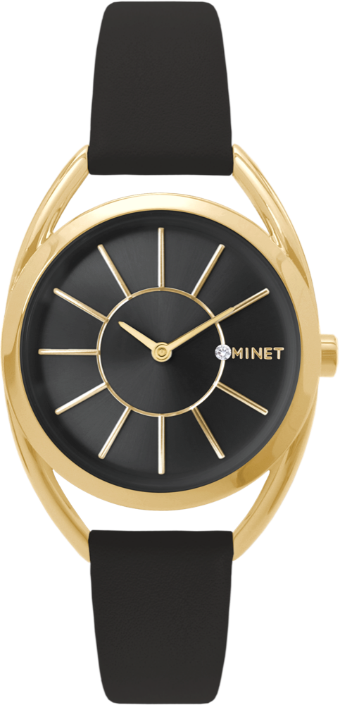MINET Czarno-złoty damski zegarek ICON BLACK z czarnym skórzanym paskiem
