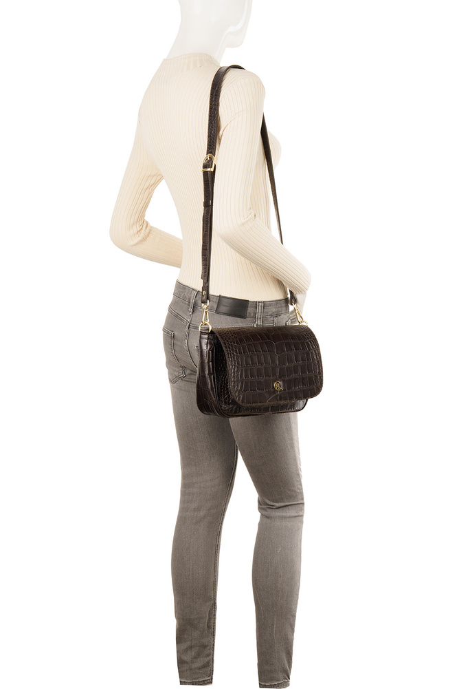 Wykonana z naturalnej skóry tłoczonej we wzór krokodyla, ta torebka to propozycja dla kobiet, które cenią klasę i wyjątkowy design.