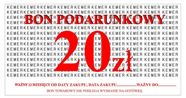 BON PODARUNKOWY KEMER O WARTOŚCI 20 ZŁ
