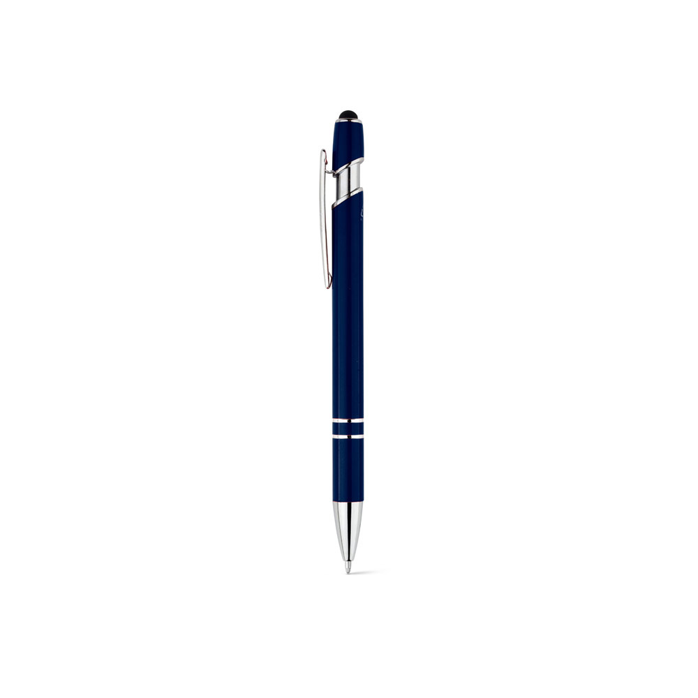 Pióro kulkowe z aluminium pochodzącego z recyklingu (100% rAL), z końcówką dotykową na górze pióra. Niebieski tusz. ø10 x 143 mm