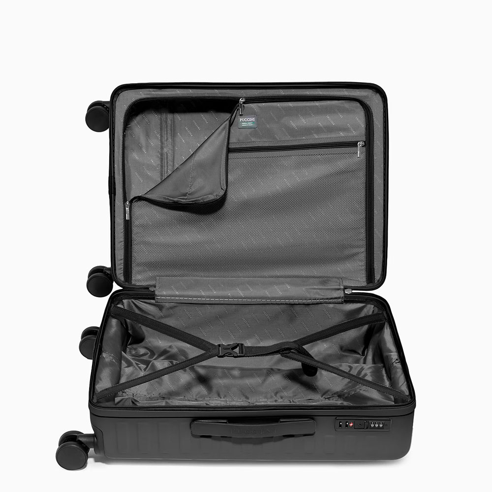 - walizka podzielona na 2 oddzielne komory wewnętrzne