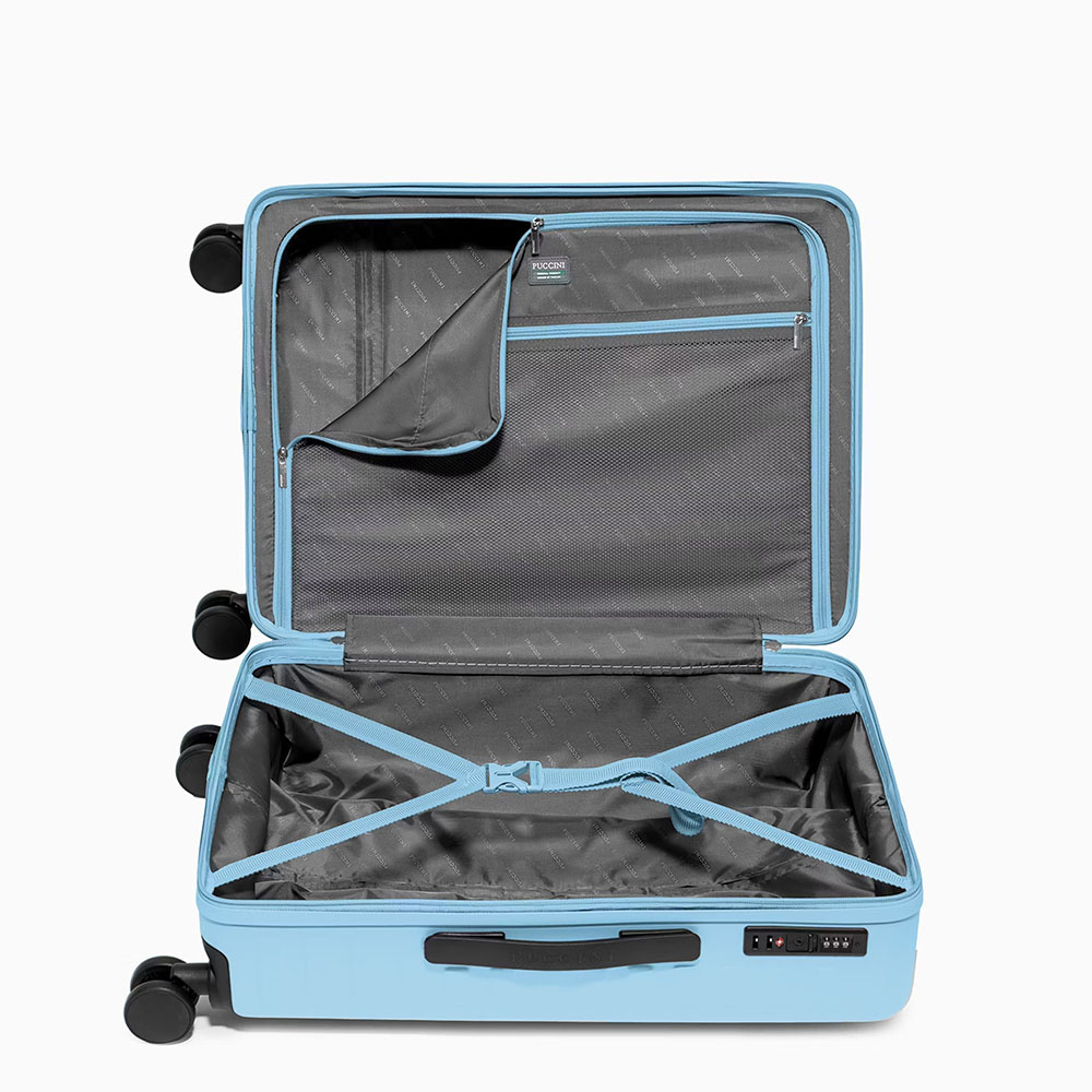 - walizka podzielona na 2 oddzielne komory wewnętrzne