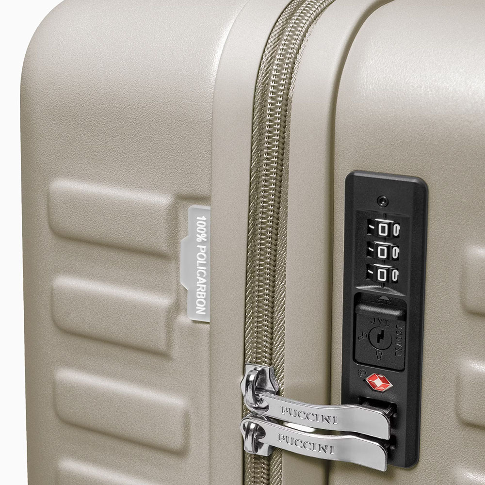 - walizka twarda wykonana z wytrzymałego poliwęglanu Makrolon (polikarbonatu), charakteryzującego się duża odpornością na uszkodzenia
