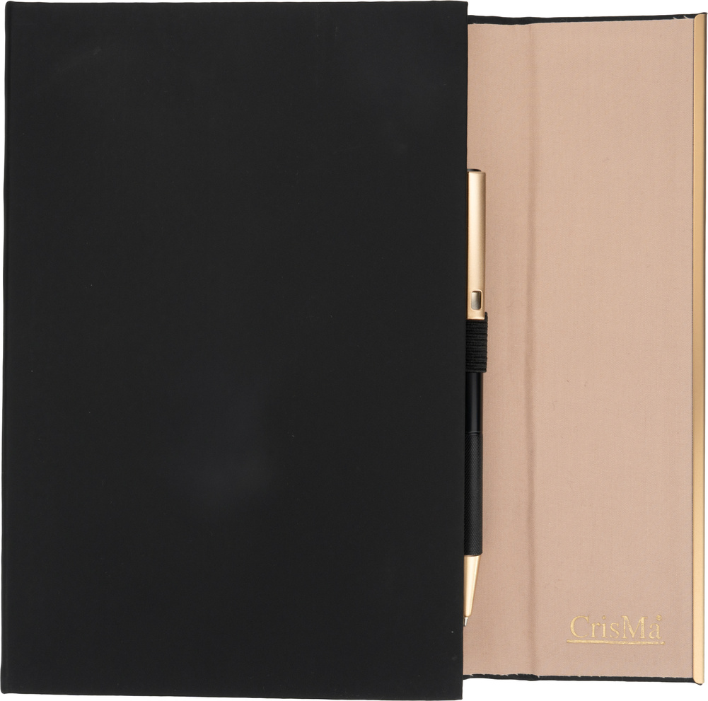 Zestaw notes A5 w linie i długopis CrisMa to elegancki i funkcjonalny komplet, który doskonale sprawdzi się w codziennym użytkowaniu, zarówno w biurze, jak i podczas spotkań biznesowych czy osobistych. Notes o formacie A5 zawiera 96 stron w linie, co sprawia, że jest idealnym rozwiązaniem do robienia notatek, szkicowania czy zapisywania ważnych informacji. Kartki w linie zapewniają wygodę pisania i porządek, co umożliwia łatwe organizowanie zapisanych treści.Oprawa notesu wykonana jest ze skóry pochodzącej z recyklingu, co czyni ten produkt przyjaznym środowisku. Wykorzystanie materiałów z recyklingu to odpowiedzialny wybór, który wspiera dbałość o naszą planetę. Skórzana okładka dodaje elegancji, a jednocześnie jest trwała i przyjemna w dotyku, co sprawia, że zestaw staje się praktycznym, a zarazem estetycznym akcesorium, które z powodzeniem można zabrać ze sobą na spotkania czy konferencje.Zestaw uzupełnia dopasowany kolorystycznie długopis CrisMa, który zapewnia komfortowe pisanie. Jego wyjątkowy design oraz płynność pisma sprawiają, że jest to nie tylko narzędzie do zapisywania, ale także element podkreślający profesjonalizm użytkownika. Długopis charakteryzuje się wygodnym uchwytem, co zapewnia komfort przy dłuższej pracy, a jego elegancka forma doskonale współgra z designem notesu.Zestaw notes A5 w linie i długopis CrisMa to doskonały wybór dla osób poszukujących połączenia ekologicznych materiałów z wysoką jakością wykonania. Jest to produkt, który sprawdzi się zarówno jako element codziennego użytku, jak i elegancki upominek biznesowy.