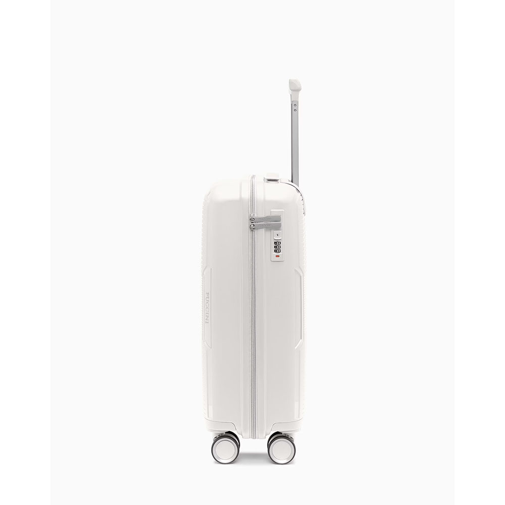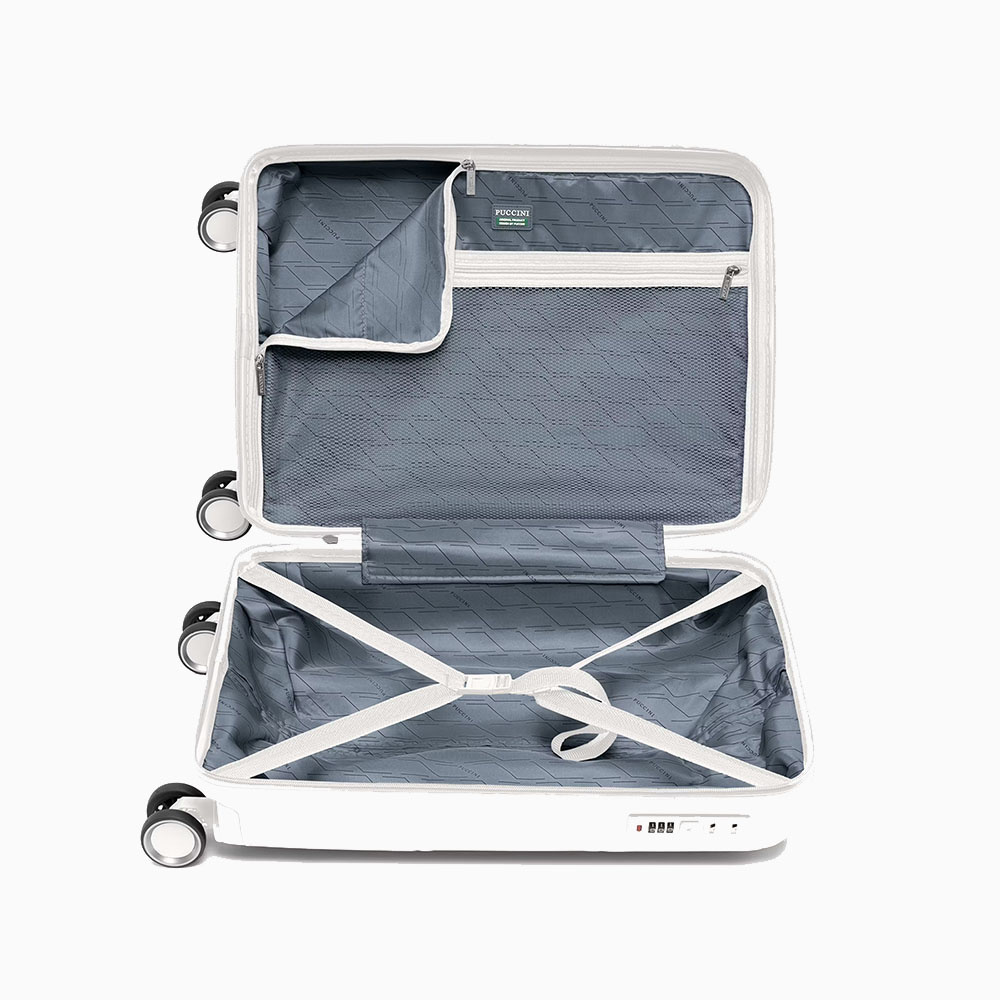 - walizka twarda wykonana z polipropylenu, materiału charakteryzującego się super lekką wagą i niezwykłą wytrzymałością