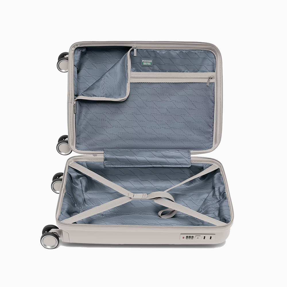 - walizka twarda wykonana z polipropylenu, materiału charakteryzującego się super lekką wagą i niezwykłą wytrzymałością