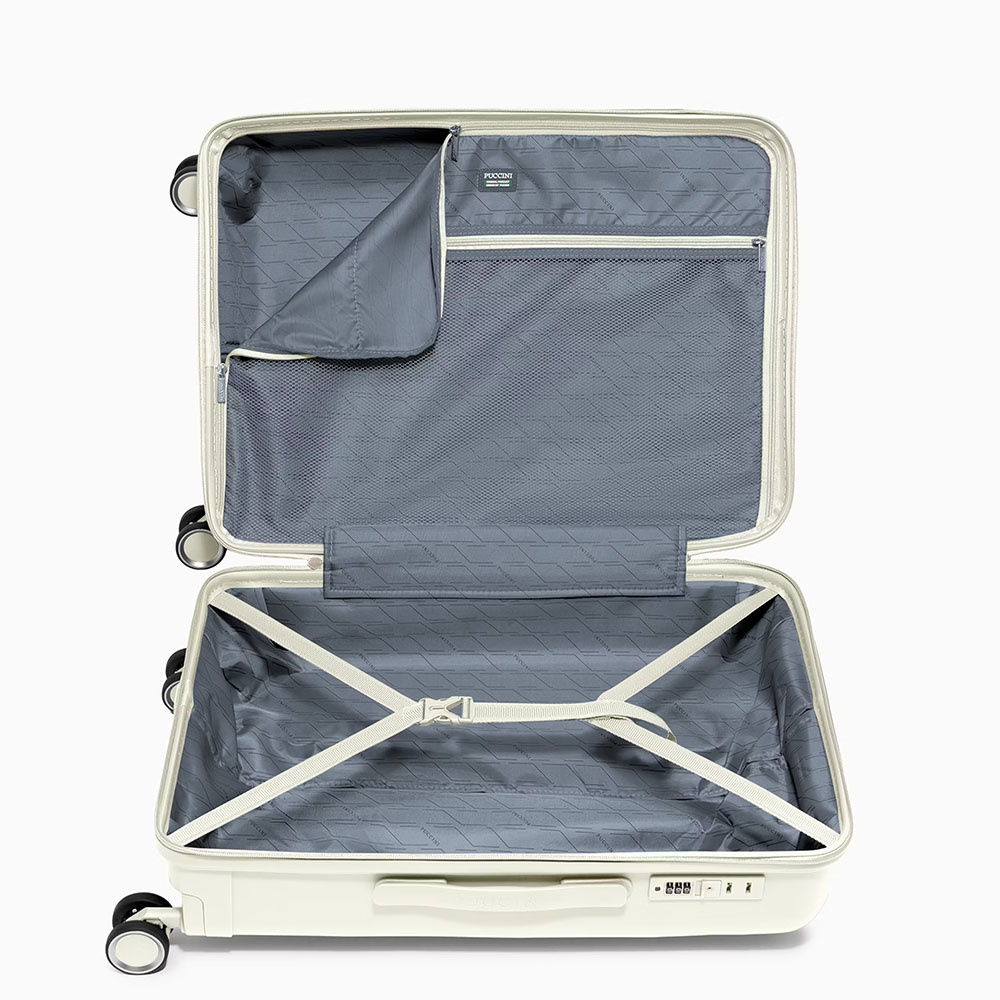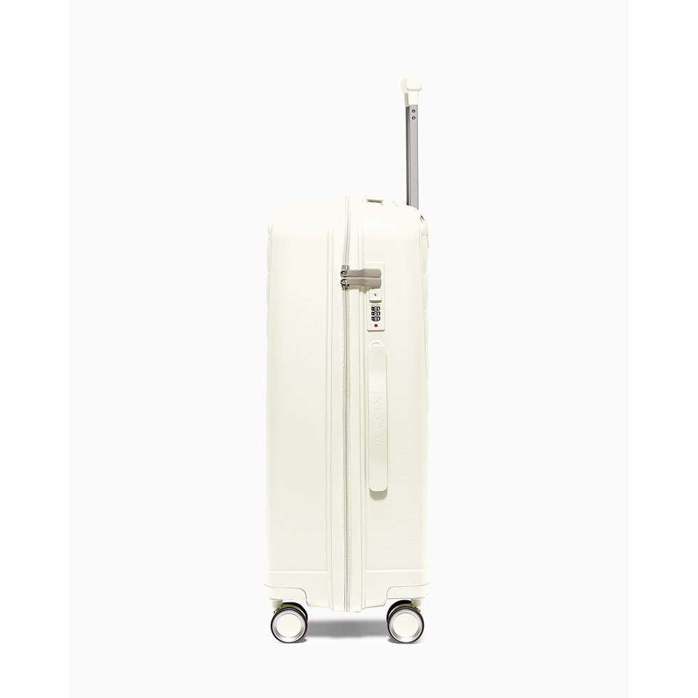 - walizka twarda wykonana z polipropylenu, materiału charakteryzującego się super lekką wagą i niezwykłą wytrzymałością