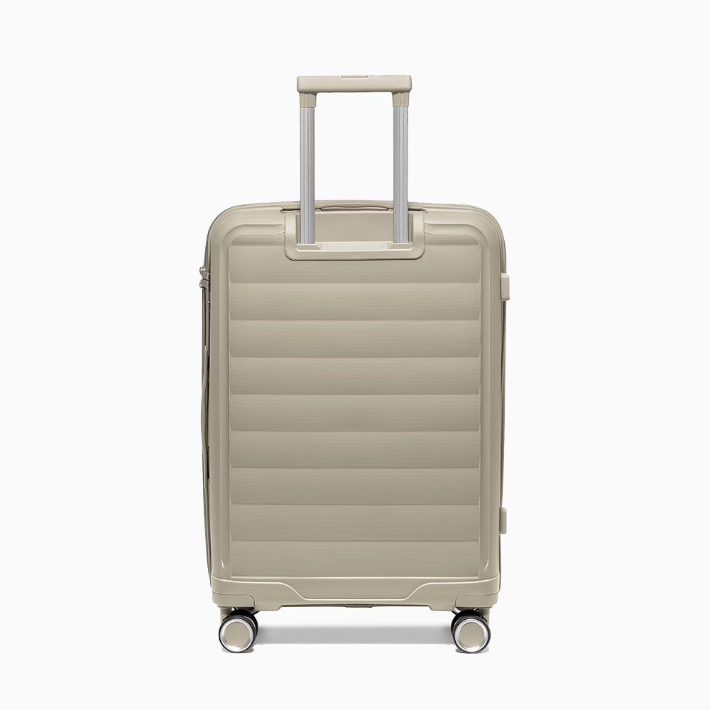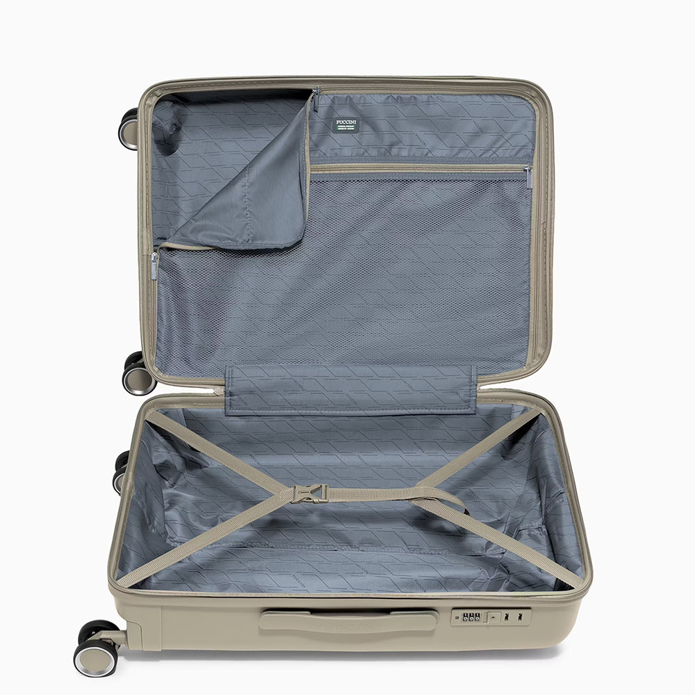 - walizka twarda wykonana z polipropylenu, materiału charakteryzującego się super lekką wagą i niezwykłą wytrzymałością