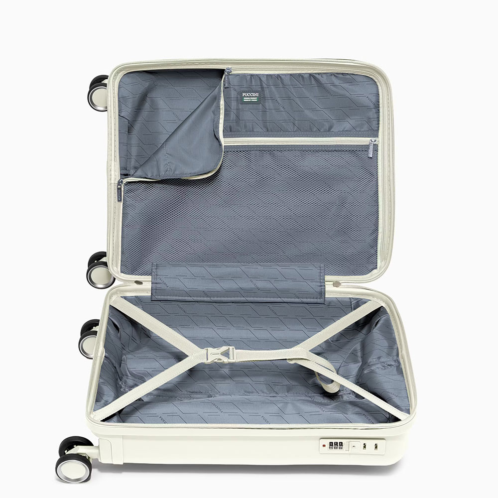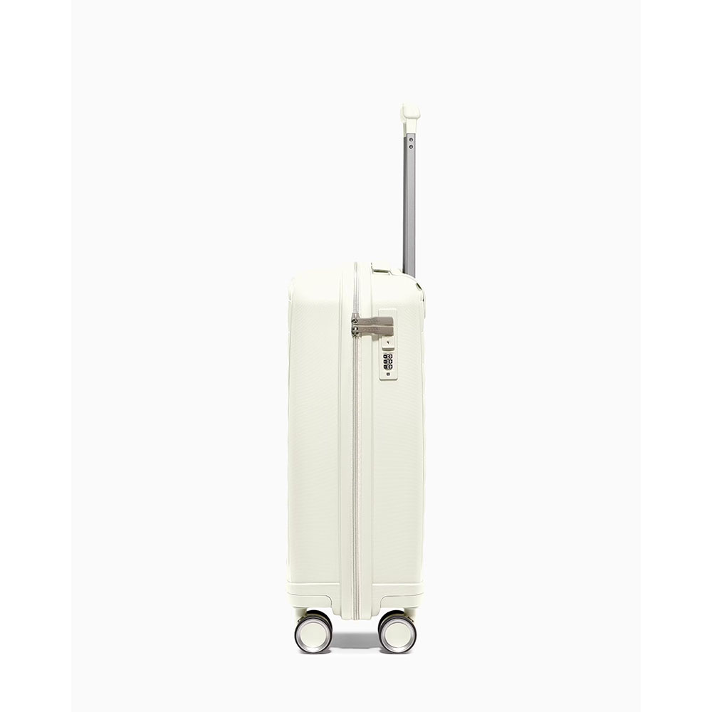- walizka twarda wykonana z polipropylenu, materiału charakteryzującego się super lekką wagą i niezwykłą wytrzymałością