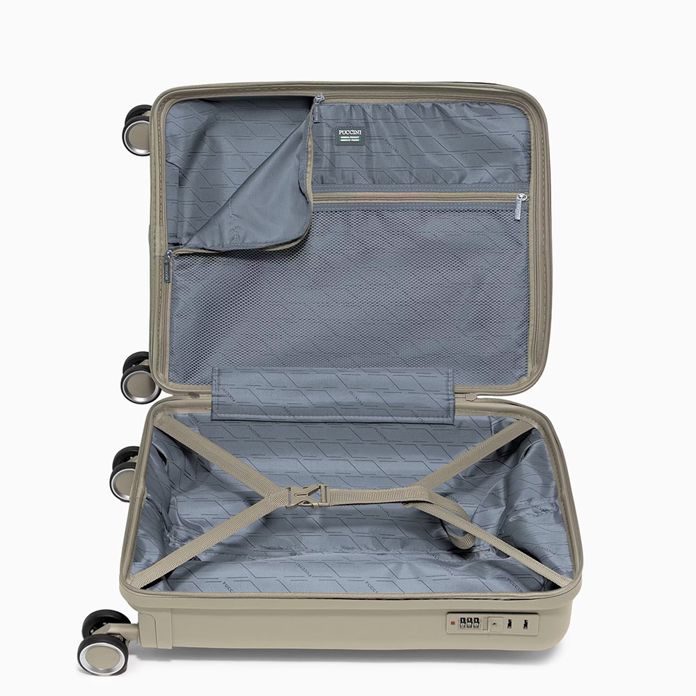- walizka twarda wykonana z polipropylenu, materiału charakteryzującego się super lekką wagą i niezwykłą wytrzymałością