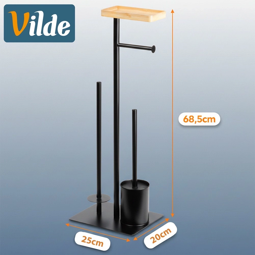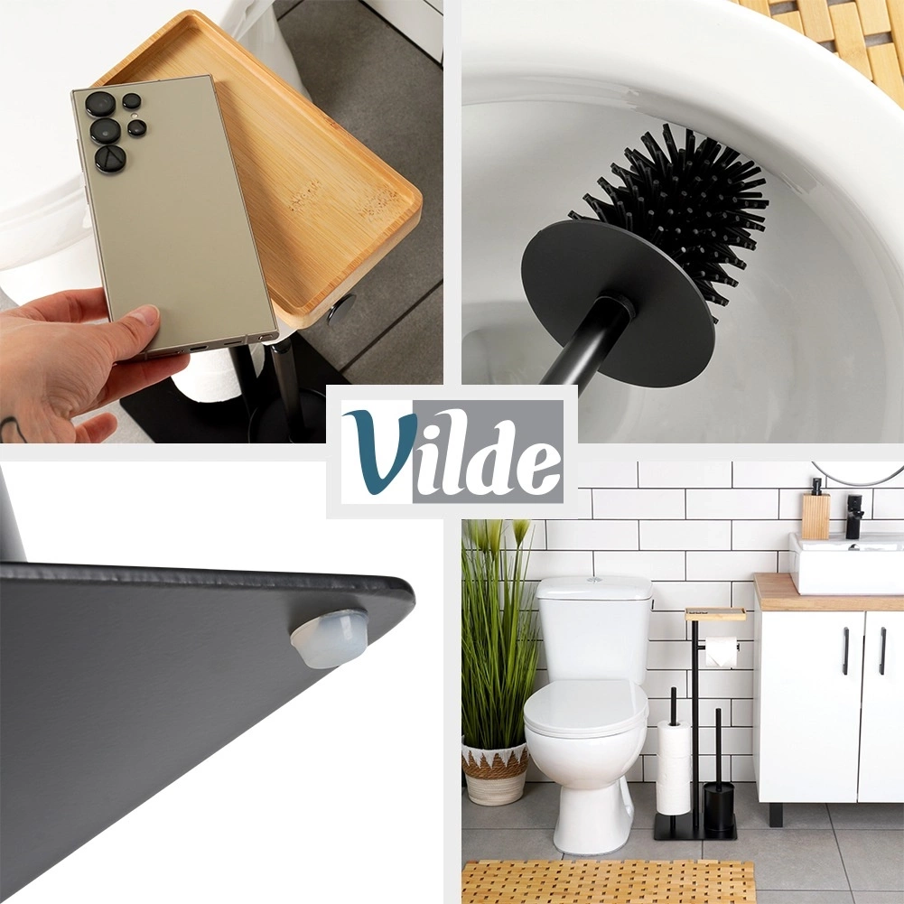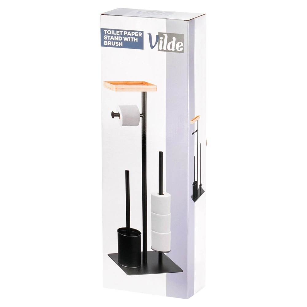 Praktyczny zestaw 2w1 do toalety - stojak i szczotka w jednej kompaktowej konstrukcji. Umożliwia wygodne przechowywanie papieru i zachowanie porządku w łazience. Minimalistyczny design pasuje zarówno do nowoczesnych, jak i klasycznych łazienek. Oryginalny produkt marki Vilde. Wyprodukowano zgodnie z europejskimi standardami.
