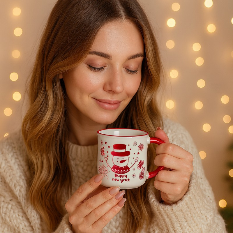 Świąteczny kubek ceramiczny z matowym wykończeniem Idealny dla każdego miłośnika kawy czy herbaty.